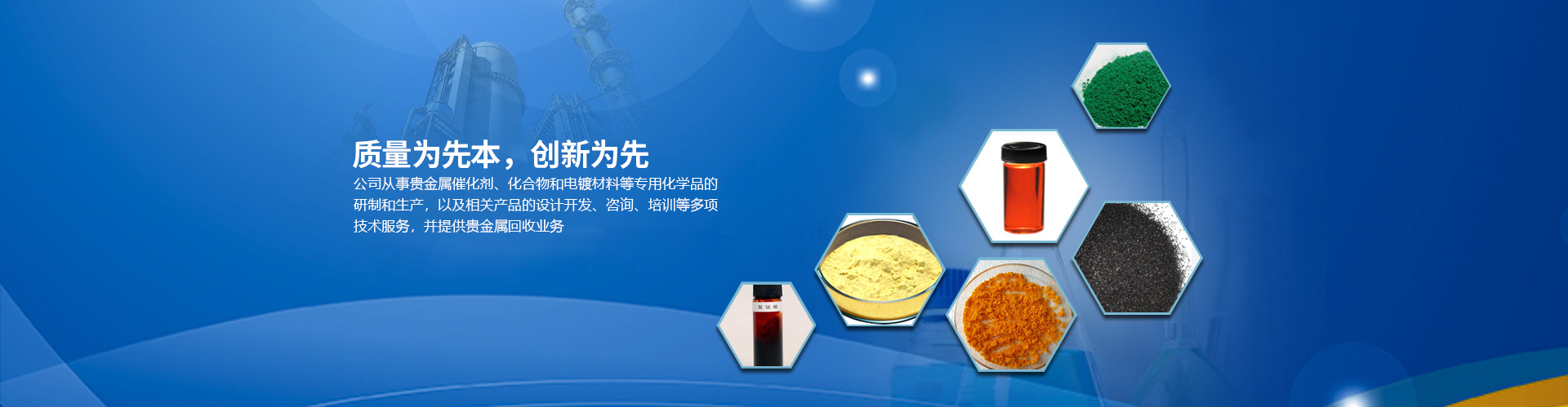 目前公司的主要產(chǎn)品有:醋酸鈀、氯化鈀、硝酸鈀、硫酸鈀、氯鉑酸、反-二(三苯基膦)二氯化鈀、四(三苯基膦)鈀、乙酰丙酮鈀;三氯化銠、辛酸銠、碘化銠、硝酸銠、醋酸銠、三苯基膦氯化銠、三苯基膦乙酰丙酮羰基銠、三苯基膦氯化銠、乙酰丙酮二羰基銠等,廣泛應(yīng)用于藥物合成、石油化工、精細化工和電鍍領(lǐng)域。本公司對所有產(chǎn)品進行嚴(yán)格檢測從定量和定性方面嚴(yán)把質(zhì)量關(guān),并通過ISO90001質(zhì)量體系認(rèn)證。
